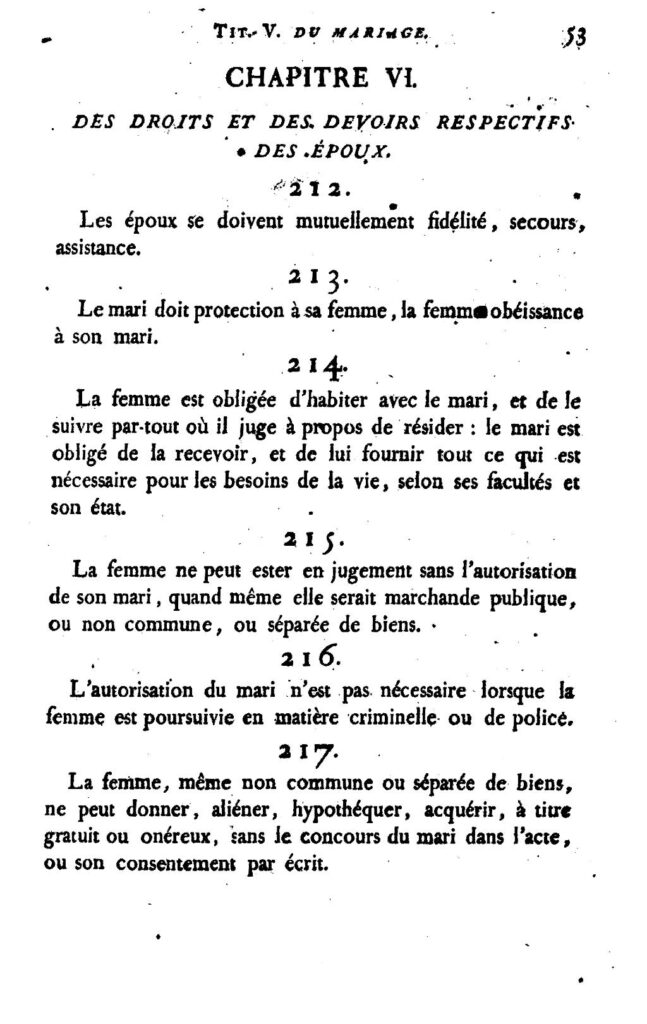 Ce fameux devoir conjugal, ce mot ne devrait même pas exister. Je trouve ça fascinant. D’ailleurs la France a été condamnée, il y a quelques mois, le 23 Janvier 2025, par la Commission Européenne des Droits de l’Homme, pour son interprétation toute personnelle du viol conjugal et a rappelé que « tout acte sexuel non consenti est constitutif d’une forme de violence sexuelle ». Et en même temps, on vient d’une société dans laquelle la femme appartenait à son mari, comme un meuble, dans le Code Civil de 1804, dit Code Napoléon qui estimait qu’il ne pouvait pas y avoir de viols entre époux. Les juges et les avocats, de ses 50 dernières années, en sont encore fortement imprégnés même s’il y a dernièrement une évolution, un progressisme Ce fameux devoir conjugal est un mot qui ne figure nulle part dans la loi. C’est plus vu comme un impôt de la femme.
