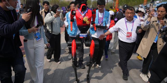 Dans la banlieue de Pékin, en Chine, dimanche 19 avril, le semi-marathon de Yizhuang a été remporté par un robot représentant la marque chinoise de smartphone Honor, en 50 minutes et 26 secondes.