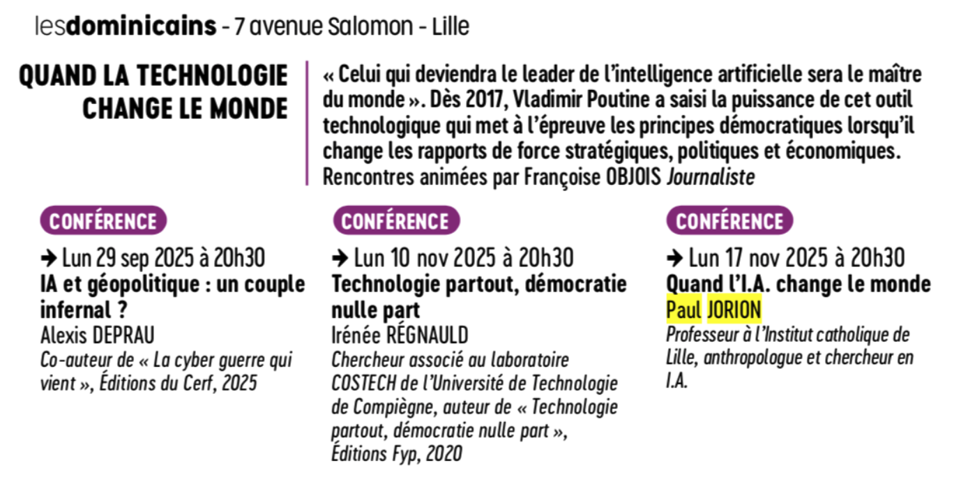 Les Dominicains – « Quand l’IA change le monde », à Lille, le 17 novembre à 20h30