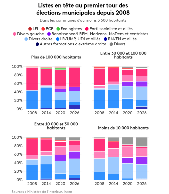 De même, les partis dépourvus d’ancrage local (les petites formations, la Macronie, LFI) partent avec un gros désavantage. Ils n’ont pas de sortants à faire réélire et dans de nombreuses villes, n’ont pas de liste autonome ou de candidats clairement identifiés.