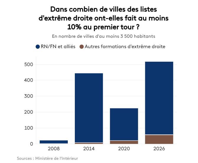 Ensuite, il s’agit d’un scrutin local, avec ses spécificités. Dans les petites et moyennes communes, on vote surtout pour les personnes (“monsieur le maire”) et des enjeux locaux (la collecte des poubelles, les places de parking…). La mort du néonazi Quentin Deranque n’a pas énormément d’impact sur le duel entre la liste “Gauche unie” et “Divers gauche” d’une commune bretonne de 16 000 habitants.