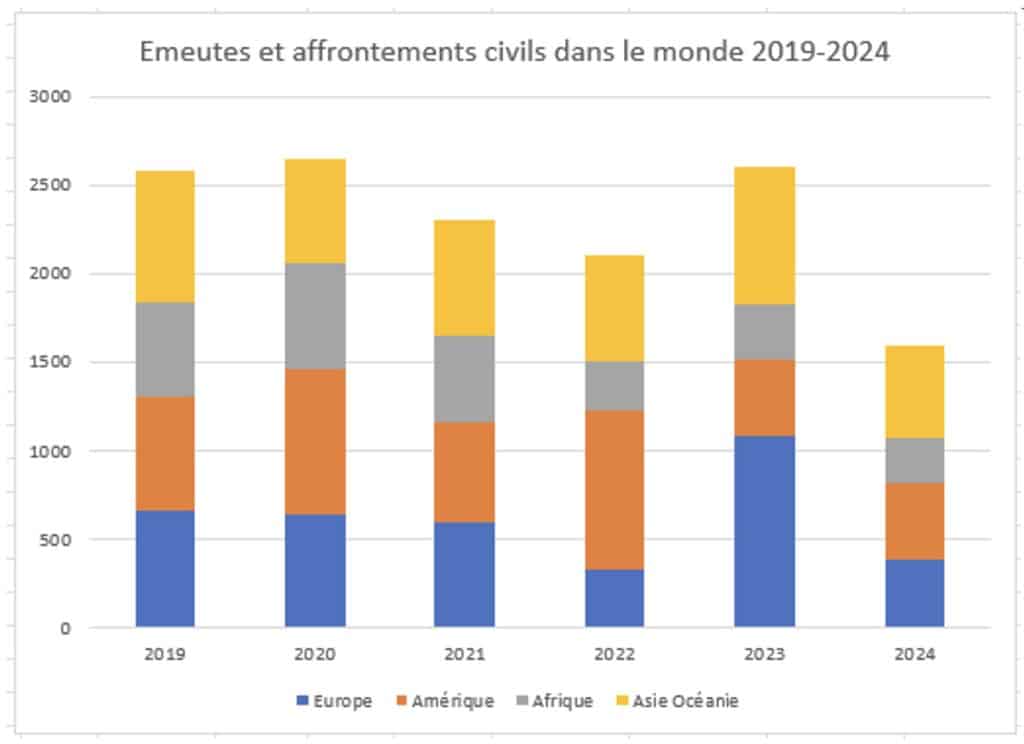 En 2024, la chute de la fièvre émeutière et des affrontements civils dans le monde a été spectaculaire. La violence s’est pour une part déplacée : dans la guerre civile, dans la guerre faite aux civils jusqu’au génocide, dans des déchainements xénophobes d’une ampleur inédite.