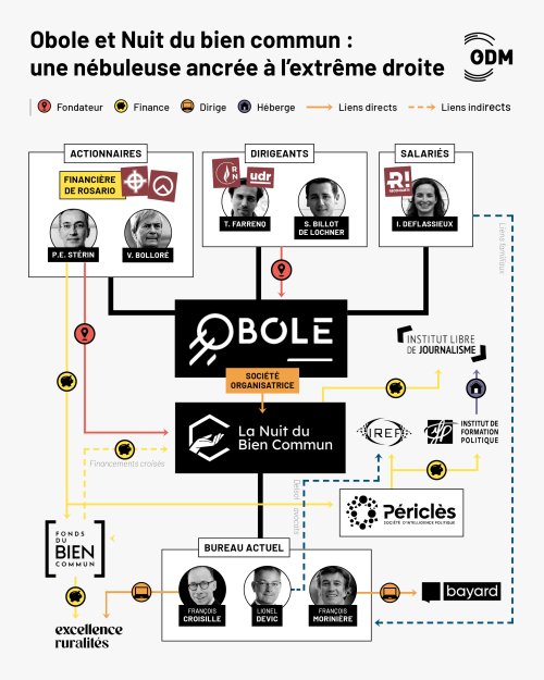 Quant à Thibault Farrenq, fondateur d'Obole, il s'est présenté en 2024 aux élections législatives en Vendée sous l'étiquette du parti d'Éric Ciotti, allié au Rassemblement national. Il a quitté Obole dans la foulée pour créer Studio 496. Cette agence événementielle, également financée par Pierre-Edouard Stérin, est derrière le label des « Plus belles fêtes de France » qui a défrayé la chronique à l'été 2025 suite aux révélations de L'Humanité sur ses liens avec le milliardaire d'extrême droite.