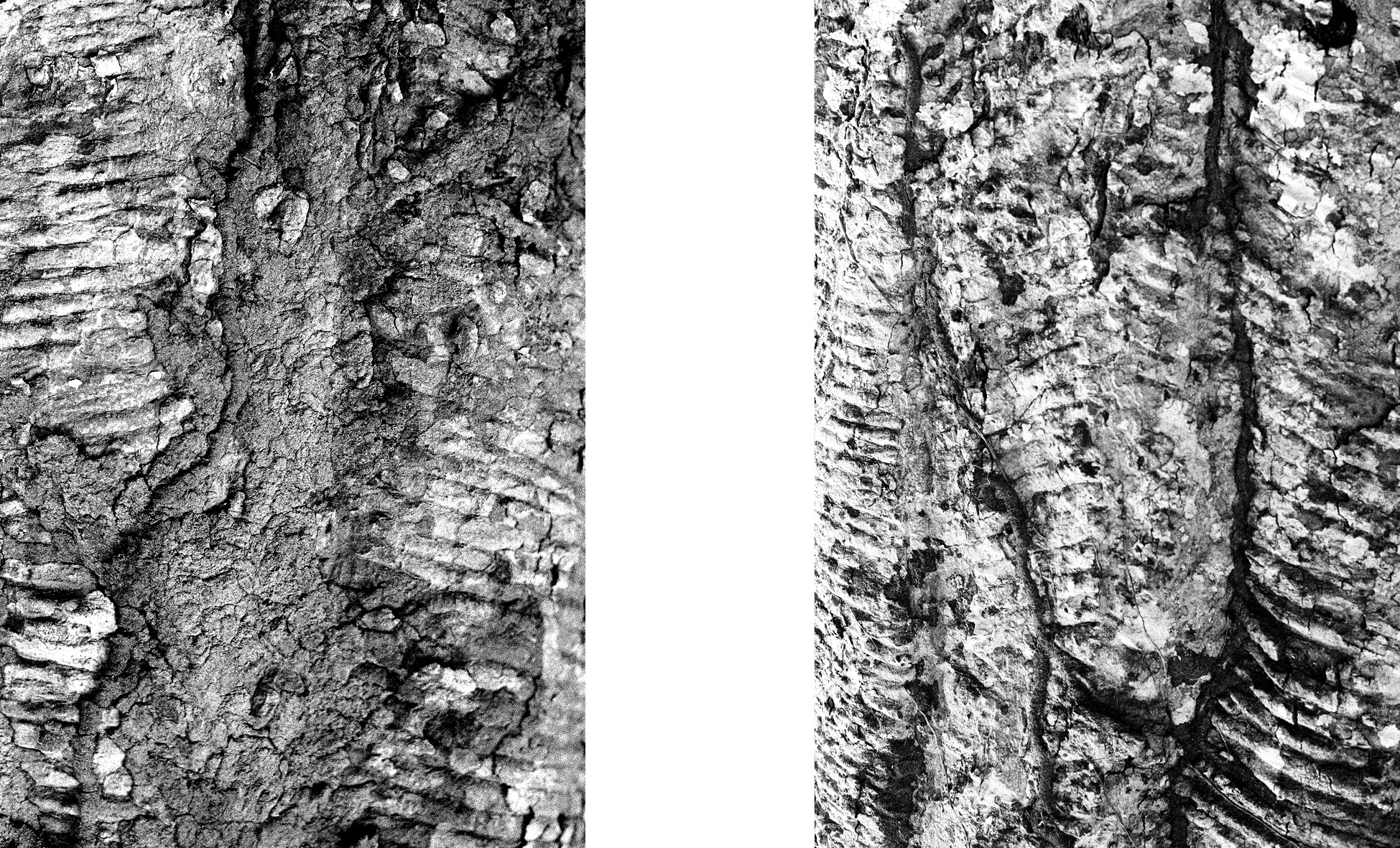 Tout récemment, l’archéologue Eduardo Goes Neves a démontré en étudiant les propriétés des sols que des populations autochtones y vivent depuis 11 000 ans, au début de l’Holocène. Ces sols sont donc des « archives » de ces vies, des archives vivantes. Durant son séjour en Amazonie pour le tournage de ce film, Bianca Dacosta a également réalisé en parallèle la série photographique Traga Terra (Avalez la Terre, 2022) qui montre le contexte plus général de l’extraction de l’or, ainsi que Dorsale 5 qui met en lumière, au plus près des éléments, les cicatrices produites sur les arbres à caoutchouc. Elle réunit quelques-unes de ces photos dans la boîte à tiroir Mémoires de Nazaré (2022) pour signaler les liens profonds entre les mémoires des populations d’humains et celles des non-humains de la forêt.
