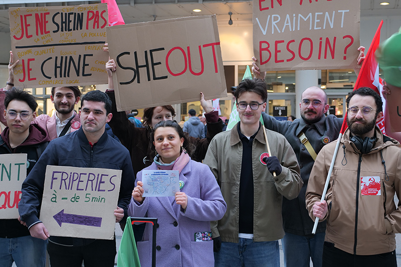 Manuel Pavard« Faisons reculer Shein et son monde ». Tel était le mot d’ordre de l’appel lancé conjointement par plusieurs organisations de jeunesse (Jeunes écolos, Jeunes communistes, Jeunes socialistes, Jeunes Génération.s), syndicats étudiants (Coordination étudiante Grenoble, l’Ourse — Sciences Po Grenoble), associations et collectifs (Alternatiba, Extinction Rébellion, Résistance à l’agression publicitaire, Attac). Appel auquel ont répondu une centaine de manifestants, réunis ce samedi 28 février devant le BHV de Grenoble.
