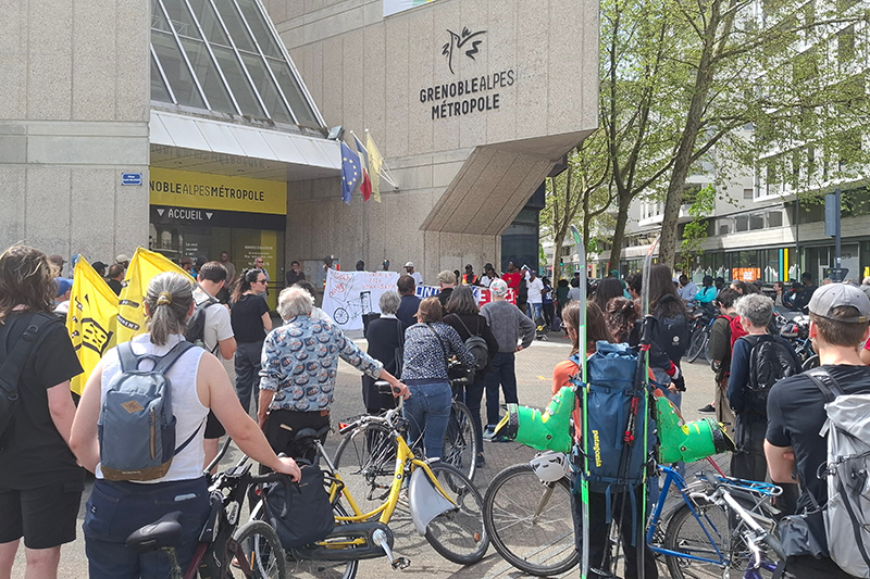 Les occupants ont pris la parole tour à tour pour confier leur dépit et leur ras-le-bol.Sa voix trahit sa colère, partagée par les militants des différentes organisations (DAL 38, UL CGT Grand Grenoble, CNT 38…) présents ce vendredi 10 avril, et bien sûr par l’ensemble des occupants du siège de Grenoble Alpes Métropole. Sur les quelque 150 personnes — essentiellement des livreurs à vélo et leurs familles — arrivées dans le bâtiment de la place André-Malraux le 19 novembre dernier, entre 70 et 80 vivent encore ici ou plutôt survivent. Après 142 jours et nuits d’occupation.