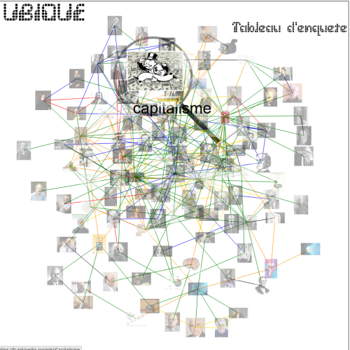 Précédemment, nous n'avons abordé la relation entre l'ubique et le système de domination capitaliste qu'indirectement. Partant de l'analogie entre le capitalisme et les axiomatiques logiques, puisque l'ubique permet de mettre en œuvre ces dernières, nous en avons déduit, par transitivité, que l'ubique devait également être un moyen approprié pour faire fonctionner le capitalisme. Mais nous pouvons désormais approfondir notre compréhension de ce qui lie capitalisme et ubique – tout du moins le pôle conservateur de l'ubique.