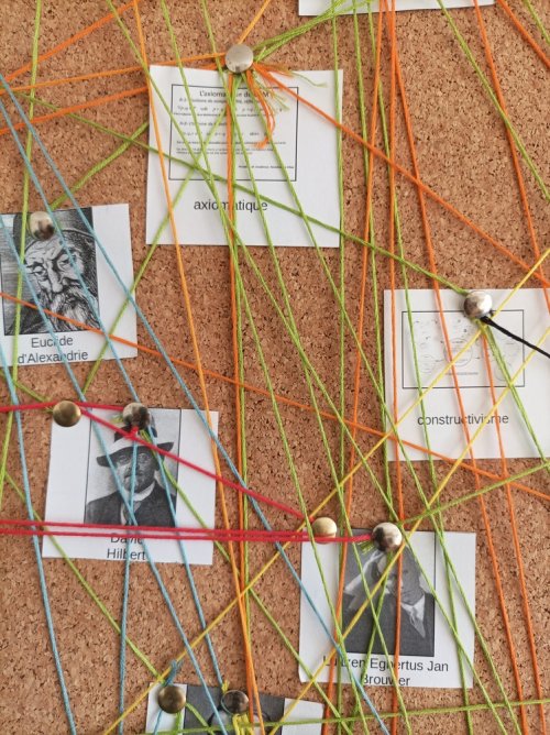 On peut bien définir une droite comme passant par deux points ou un plan comme contenant une droite et un point extérieur à celle-ci, les notions de points, de droites et de plans n'ont pas dans l'axiomatisation de la géométrie les significations qu'on leur accorde couramment en géométrie. Elles n'en ont aucune. Et on pourrait tout aussi bien les remplacer par d'autres signifiants – par « tables », « chaises » et « chopes de bière » avait l'habitude de plaisanter David Hilbert, père de l'axiomatique moderne – ou plus prosaïquement par des x, des y et des z.
