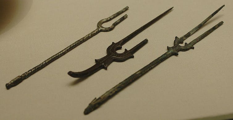 Les premières versions de la fourchette ont été retrouvées dans la Chine de l’âge du bronze et dans l’Égypte antique, bien qu’elles aient probablement servi surtout à la cuisson et au service des aliments. Les Romains disposaient de fourchettes élégantes en bronze et en argent, mais là encore principalement pour la préparation des repas.