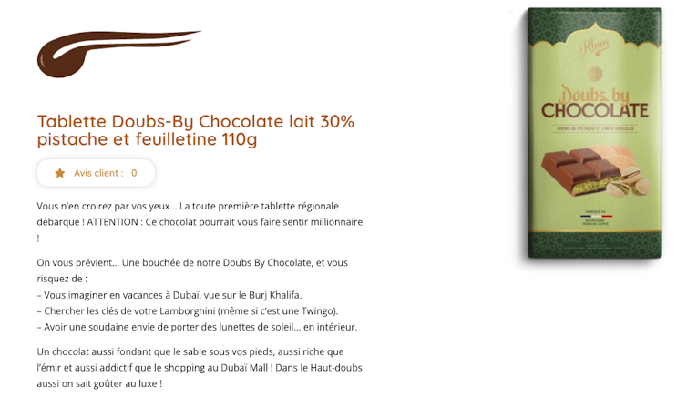 L’entreprise franc-comtoise a bien compris le rôle essentiel de l’onomastique. Ce « Doubs by Chocolate » surfe sur la vague, mais le nom identifie clairement le chocolat comme un produit régional. L’origine signalée ne crée pas de risque juridique, tout en conservant une homophonie parfaite avec le fameux « Dubai chocolate ». En référence directe à Dubaï et à l’imaginaire idyllique de luxe et de volupté, avec toutes les précautions prises pour qu’il n’y ait pas mégarde, l’entreprise Klaus met en place un marketing déroutant évoquant le décalage.