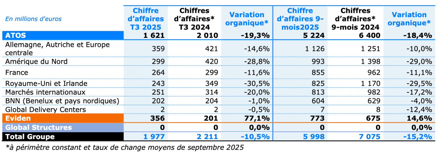 Tableau issu de la communication financière du groupe pour le 3e trimestre (octobre 2025), disponible ici en PDF.