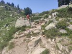 Descendre sur le lac d'Aubert en suivant les chemins. Pas de point d'eau potable sur place. Par la route, on peut rejoindre le lac d'Orédon en stop ou avec un petit train touristique. Nous sommes descendus en passant par l'aire de bivouac et les laquettes. La descente par la forêt est raide et ponctuée de gros cailloux.