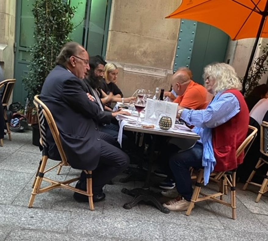 C’est aussi par l’intermédiaire de Prosper Amouyal, qu’Izzat Khatab fait la connaissance de l’imam de Drancy, Hassen Chalghoumi, dont il devient un proche, au point de lui laisser son appartement pour dormir ou faire la prière. À cette occasion, il rencontre les policiers du SDLP (Service de la Protection), chargés de la sécurité de Chalghoumi, et l’imam nîmois Hocine Drouiche vient le voir. Durant la même période, il participe aussi au Forum de la paix organisé par l’écrivain Marek Halter. À l’été 2020, tout ce beau monde dîne ensemble (voir photos). On trouve alors Hassen Chalghoumi, avec Marek Halter, Izzat Khatab et un autre sacré personnage, Pierre-Jean Chalençon, le collectionneur fantasque et adorateur de Napoléon, qui a défrayé la chronique pour être suspecté d’avoir organisé des diners clandestins durant les derniers confinements, et d’y avoir invité des ministres de la majorité actuelle.