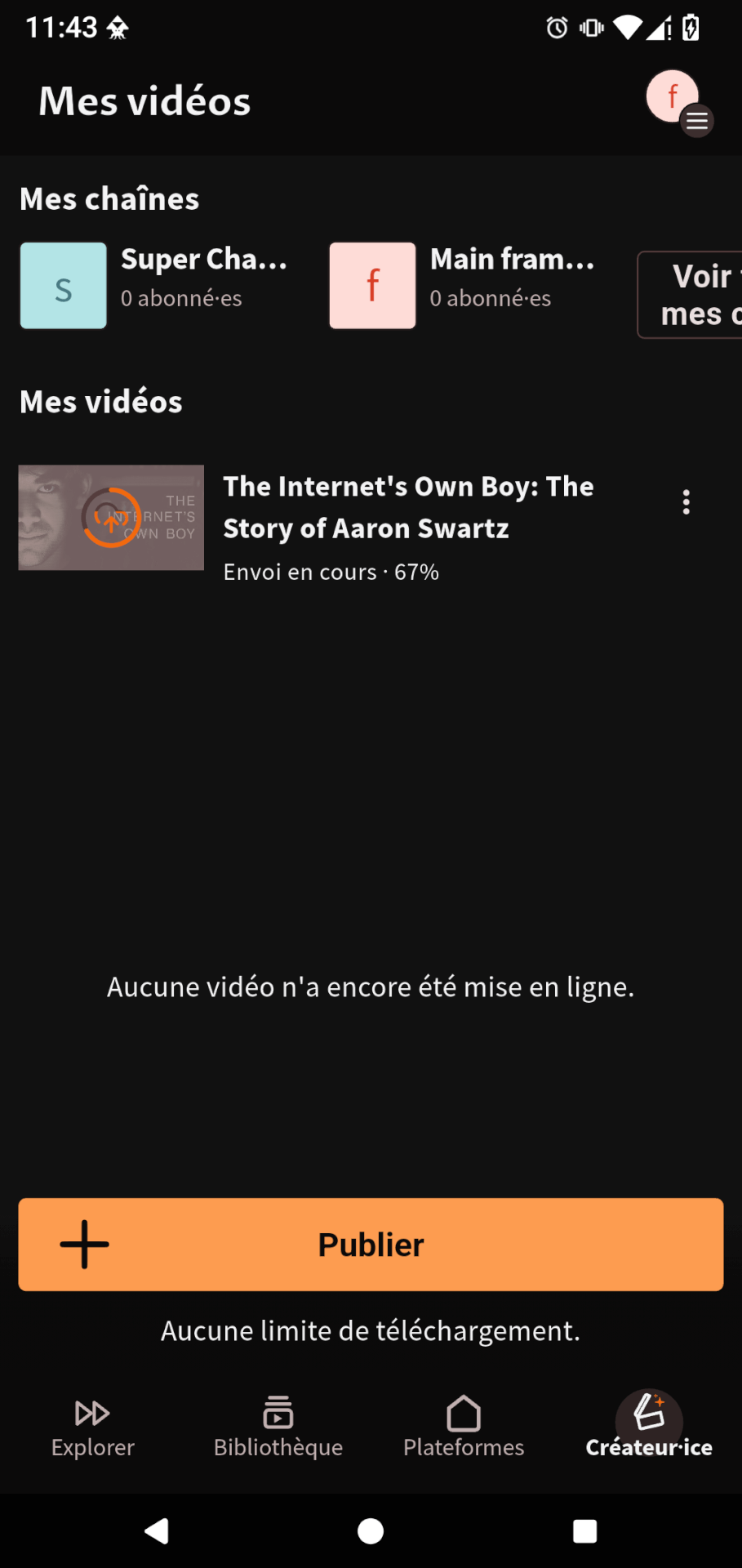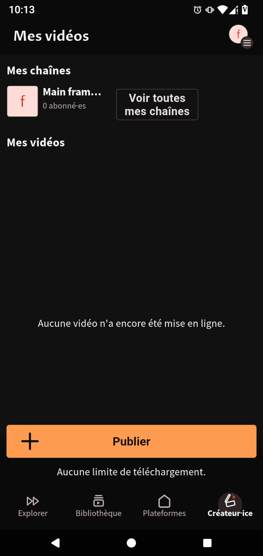 You will now find a « Creator » page in the app. From there, you can manage your channels and videos !