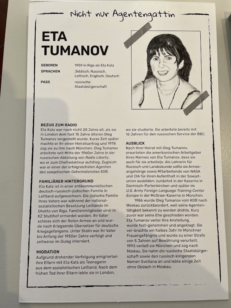 Très révélateurs, les parcours d’Oleg Toumanov et de son épouse ont été rappelés lors d’une exposition intitulée « Des Voix de Munich dans la Guerre froide », organisée au musée municipal de Munich du 30 septembre 2022 au 5 mars 2023 et consacrée aux radios occidentales Radio Free Europe (RFE)/Radio Liberty (RL).
