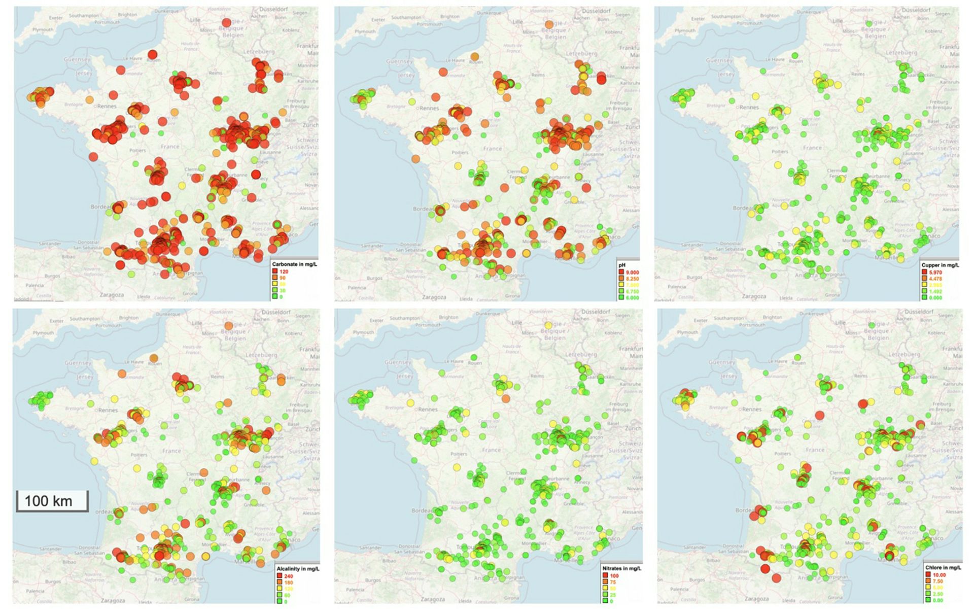 En ville, d’autres signaux apparaissent : à Lyon, Toulouse ou Marseille, les citoyens ont détecté du cuivre jusqu’à 6 mg/L, un niveau trois fois supérieur à la limite de qualité de l’eau potable (2 mg/L), généralement lié à la corrosion des vieilles canalisations en cuivre. Dans certaines zones rurales, le chlore est quasi absent, alors qu’en Île-de-France ou dans le Rhône, la concentration atteint des niveaux dix fois supérieurs à ceux observés dans les campagnes du Massif central. Cela reste compatible avec les normes, mais reflète une désinfection beaucoup plus marquée des grands réseaux urbains, expliquant parfois les goûts d’eau chlorée rapportés par certains usagers.
