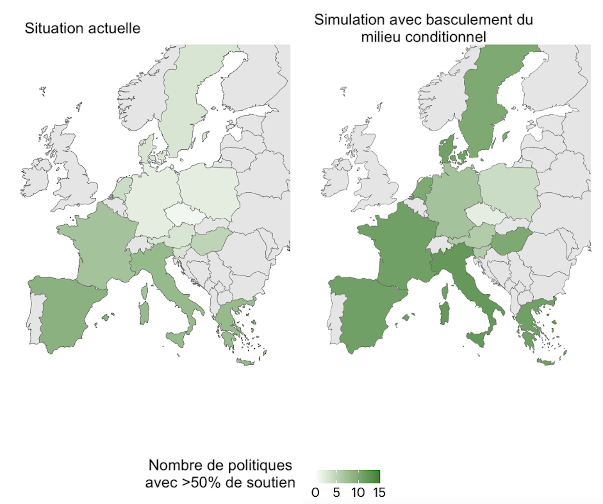 En Europe, cinq pays supplémentaires verraient alors une majorité de leurs citoyens soutenir au moins 7 des 15 politiques climatiques étudiées.