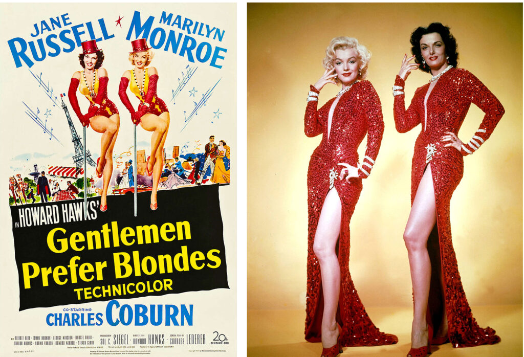 Ou alors, comme Lorelei Lee (Marilyn Monroe) dans Les Hommes Préfèrent les Blondes, d’être capable non seulement de faire preuve d’une intelligence pratique à toute épreuve dans une société patriarcale où le moindre faux pas pourrait lui être fatal, mais d’avoir parfaitement su théoriser cette société et la place qu’elle peut y obtenir à la faveur du seul capital dont elle dispose : son charme irrésistible, donné ici comme un axiome. Et ce capital, elle doit le faire fructifier avant qu’il ne se dévalue. C’est ce qu’elle explique crûment, mais dans le plus élégant des écrins, dans le numéro Diamonds Are a Girl’s Best Friend, comme dans la scène où elle convainc le millionnaire dont elle guigne la fortune de la laisser épouser son fils. Elle est contrainte d’abattre son jeu et de révéler aux hommes que celle qu’ils prenaient pour une ravissante idiote était, en réalité, une redoutable stratège. La femme-enfant, monstrueuse chimère créée pour satisfaire au regard des hommes dont le film déconstruit l’image, renverse le rapport de domination et non seulement obtient d’eux tout ce qu’elle souhaite, mais finit par « épouser » son double, son contraire, sa meilleure amie, la brune Dorothy (Jane Russell) arrivée au même point qu’elle, par de tous autres moyens (n’est-ce pas le sens du travelling avant final qui écarte les deux hommes pour isoler le seul vrai couple du film ?).