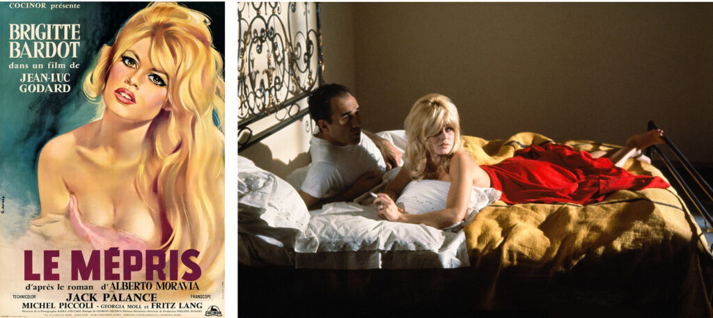 La Bardot du Mépris de Godard est également convoquée ici à travers les costumes de Zahia, le paysage méditerranéen ou les allusions à la mythologie. Mais là encore, il ne s’agit que de faire un clin d’œil et même de faire de l’œil au spectateur, de lui donner des gages de reconnaissance et de légitimation. Godard interrogeait le mythe Bardot à l’aune des mythes grecs et, s’il citait Le Voyage en Italie de Rossellini (qui n’était à l’époque une référence pour personne), c’était pour questionner ce qui restait du couple dans le monde contemporain et pour acter de l’impossibilité du miracle dans la société (que l’on n’appelait pas encore) du spectacle. Ici rien de tel : Zahia, pourtant un vrai personnage de la mythologie contemporaine (au sens où l’entendait Barthes), n’est jamais montrée que comme un corps légitimé par la référence à un autre corps, alors qu’il y avait matière à poursuivre la réflexion entamée par Godard autrement que par ce pauvre jeu de citations pour cinéphiles.