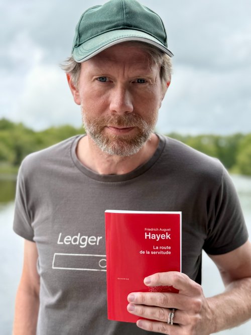« Ils ont leur petit livre rouge, nous avons le nôtre. » En ce 13 septembre 2025, Éric Larchevêque affiche une mine grave et déterminée. Sur son compte X suivi par environ 76 000 personnes, il vient de poster un portrait de lui tenant un exemplaire rouge sang de La route de la servitude, de Friedrich Hayek, un économiste ultralibéral convaincu que l'intervention de l'État ne peut mener qu'au totalitarisme. Le post est vu plus de 336 000 fois, « liké » 3000 fois et génère quantité de commentaires. Certains croient voir émerger le « Milei français », un « véritable représentant de la liberté en France », quand d'autres moquent cet « Elon Musk du pauvre ».