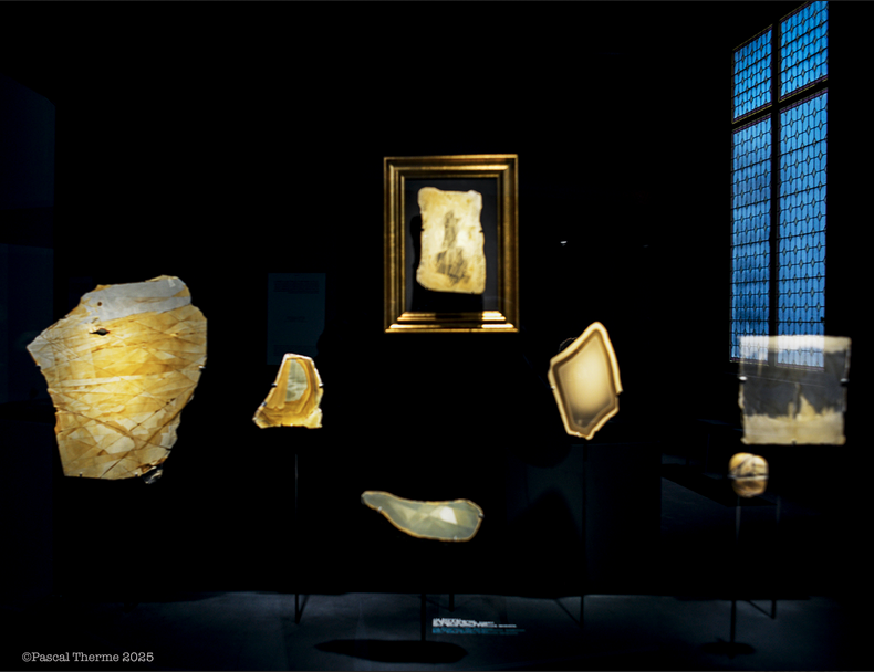 Les deux instances sont intriquées, elles donnent à ce travail toute sa valeur prédicative, informative, artistique; une vision s’en dégage, particulièrement sur un plan symbolique en « interrogeant » le regard, la vision sur la plasticité des roches dans leurs compositions, leurs stratifications, ce qu’elles sont géologiquement, et le renvoi plus poétique à cette dialectique de l’imagination matérielle, à l’interprétation de ce que génère ces matérialités différentes des strates et des blocs de roches photographiés in situ dans une approche plus onirique, dans une dynamique de la psyché et de ce qu’elle produit en chacun, comme ciel, comme rêve, à partir du « dur ».