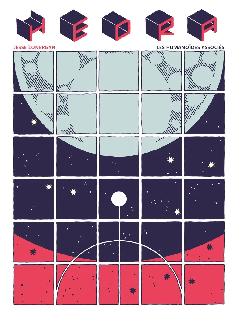Jesse Lonergan publie ses premiers projets en 2007 Flower and Fade, Joe and Azat, All Star (inédits en français) dans un style épuré, proche de la vague des blog et des webcomics avec des décors fonctionnels et un découpage centré sur les personnages pour laisser la place aux dialogues. Puis il travaille par morceau à un projet plus ambitieux graphiquement, Hedra, à partir de 2016 en autoédition puis repris chez Image en 2020. Il s’empare des planches comme on la vu plus haut pour expérimenter, les protagonistes servant à explorer le champ des possibles. Le titre vient du mot polyhedra —polyèdre en français— qui désigne un groupe de formes géométriques et donne des pistes de réflexion sur l’évolution de son travail. Il prolongera ses expérimentations avec une histoire plus complexe avec Drome —où le titre vient cette fois du suffixe grec -drome qui donne le sens du mouvement.