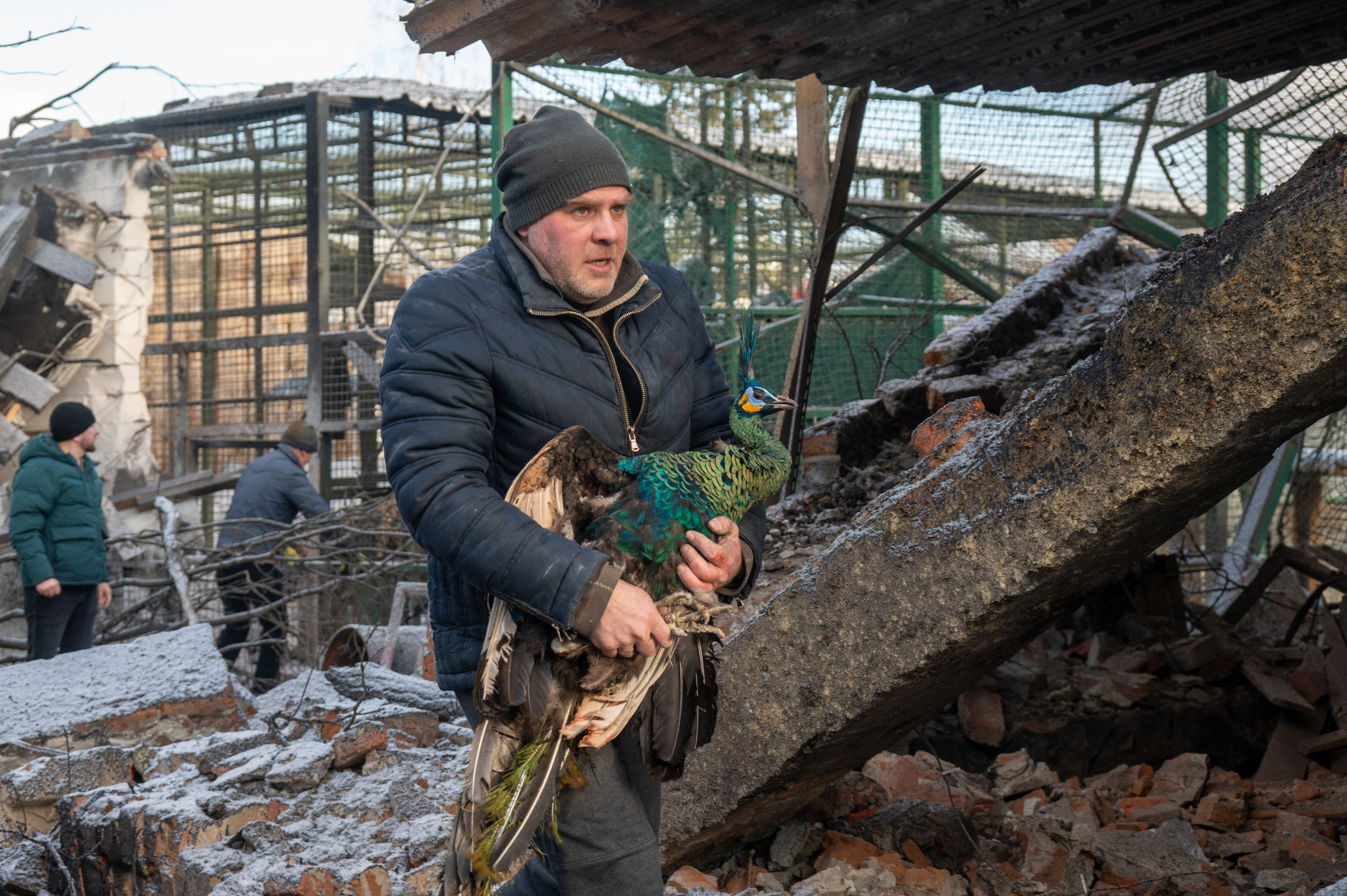 Morts, blessés, disparus, on avance le chiffre de deux millions de victimes au total en quatre années de guerre en Ukraine. Le 1er janvier, une bombe aérienne russe touchait un zoo dans la banlieue de Kharkiv. Des personnes ont été blessées, tigres, lions, des animaux ont été tués. Dans les ruines, un employé du zoo a réussi à sauver un paon.