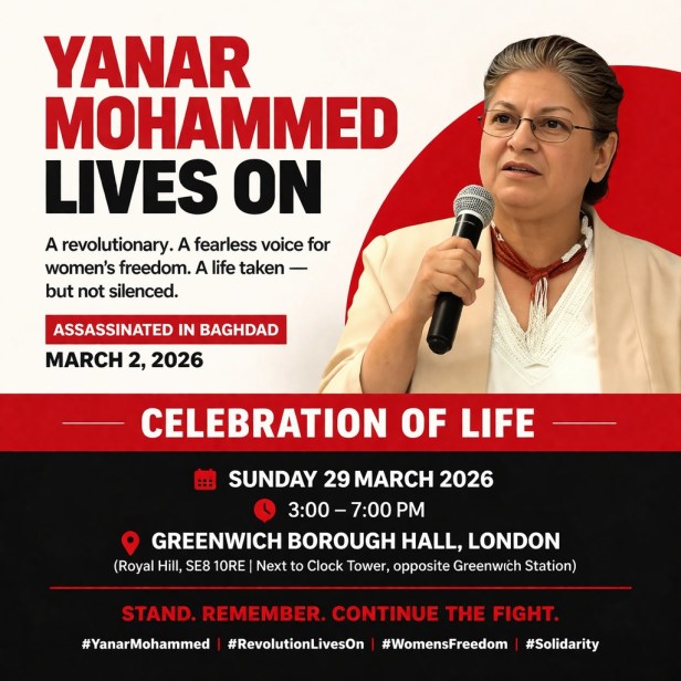 Discours de Maryam Namazie lors d’une commémoration à Londres le 29 mars, organisée par l’Organisation pour la liberté des femmes en Irak (OWFI) et l’Organisation de l’alternative communiste en Irak (OCAI).
