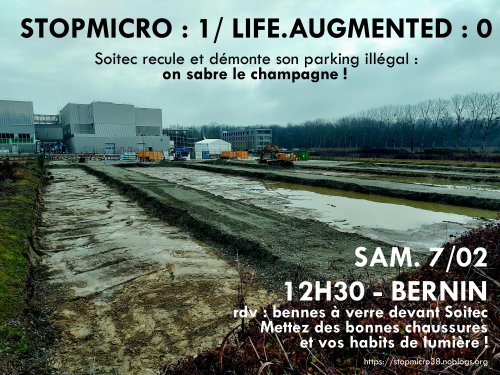 Cette réduction de la surface du fabricant de substrats pour puces électroniques intervient à un moment déterminant. L'enquête publique pour l'agrandissement de la zone d'activités économique (ZAE) des Fontaines, taillée sur-mesure pour Soitec, doit se tenir dans quelques semaines. Le collectif STopMicro, opposé à cet agrandissement, a déjà mené plusieurs actions, avec drapeaux, banderoles, fanfare, batucadas, etc.