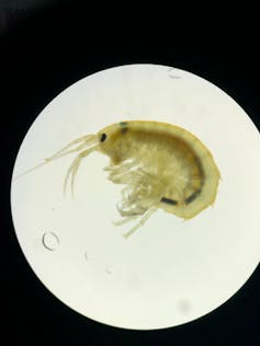 Concrètement, nous avons placé dans sept étangs lorrains implantés le long d’un gradient de terres agricoles aux pratiques diversifiées (sans activité agricole, en agriculture biologique ou en agriculture conventionnelle) de petits crustacés d’eau douce, Gammarus roeseli, enfermés dans de fines cages perméables.
