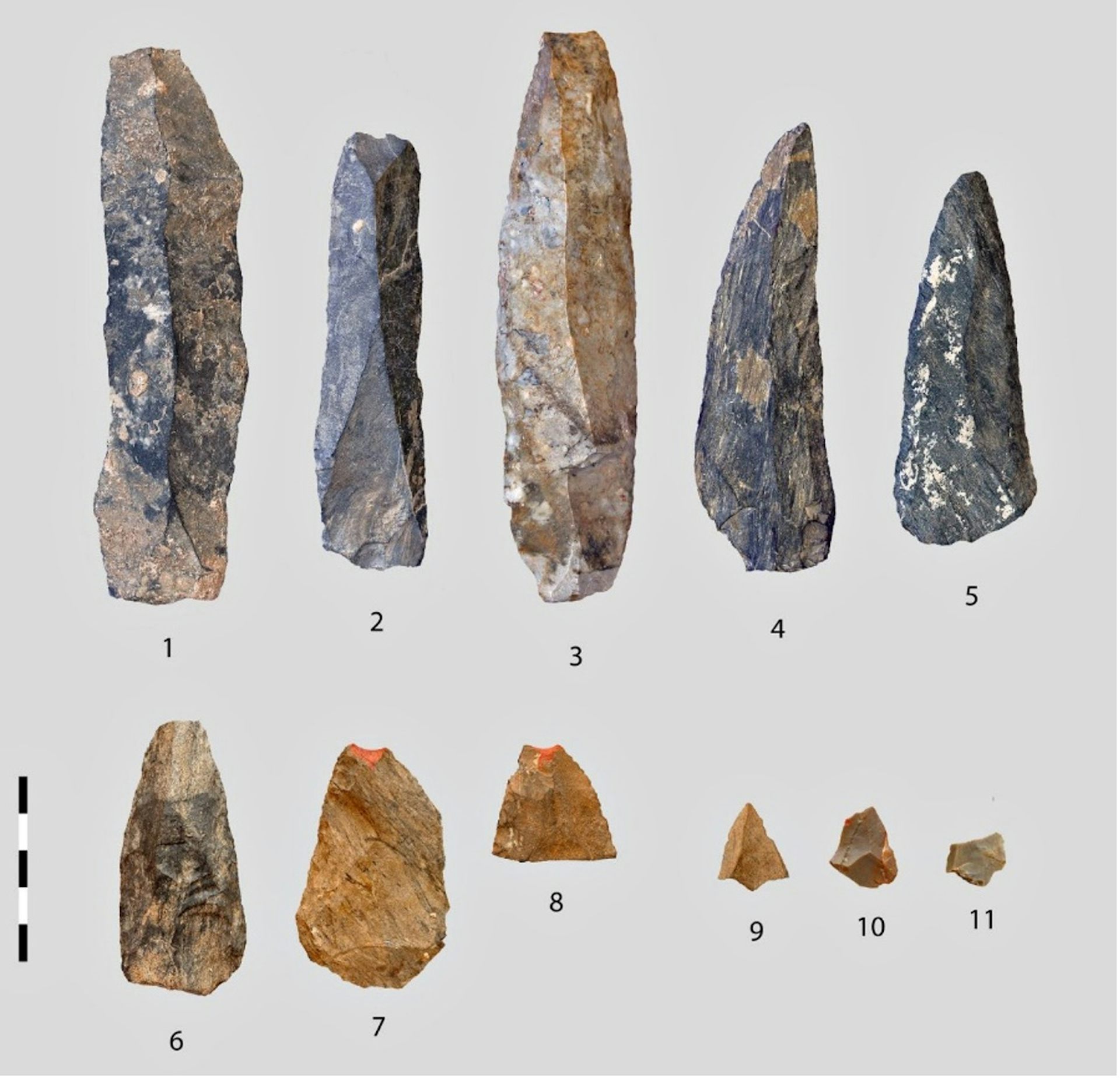 Le minuscule gabarit des pointes d’Obi-Rakhmat ne peut être regardé comme un choix par défaut, car non seulement la matière première lithique de bonne qualité dont on a tiré de grandes lames ne manque pas à proximité du site, mais l’inventaire des traces d’usage relevées à la loupe binoculaire et au microscope met en évidence au sein du même assemblage des pointes retouchées beaucoup plus robustes (15 à 20 fois plus lourdes et 3 à 4 fois plus épaisses) et du gabarit des têtes de lance ou de javeline.