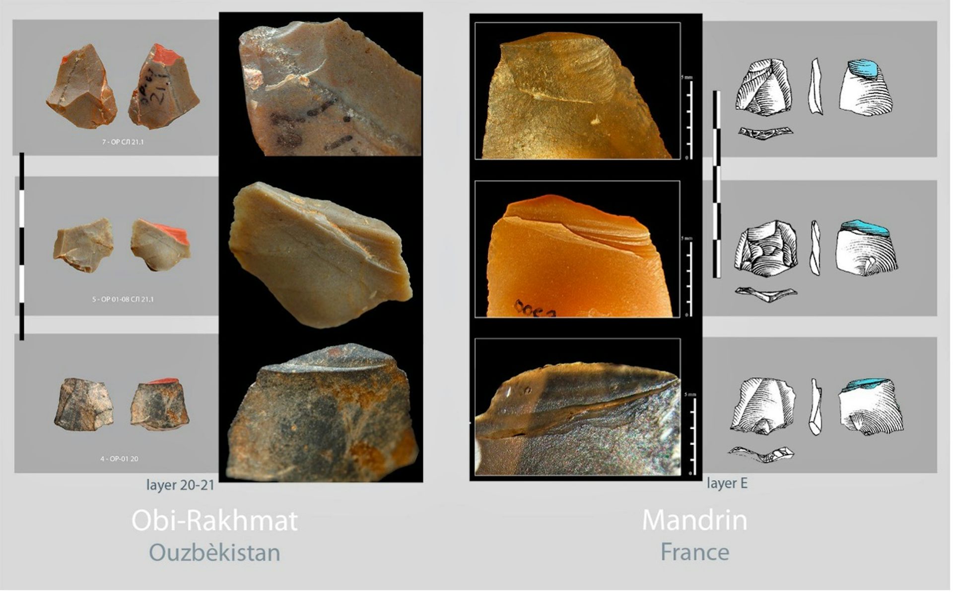 Mandrin et Obi-Rakhmat représentent probablement deux extrémités géographiques et temporelles d’une phase pionnière de peuplement telle qu’entrevue par Ludovic Slimak, marquée par ce que les typologues qualifiaient jadis de fossile directeur et qui ici recouvrirait la propagation d’une invention fondamentale propre à Homo Sapiens. Jusqu’à présent passées inaperçues parce que brutes de débitage, minuscules et fragmentaires, il est à parier que les micro-pointes de projectile dont les critères de reconnaissance sont maintenant posés commenceront à apparaître dans des sites intermédiaires entre l’Asie centrale et la Méditerranée occidentale.