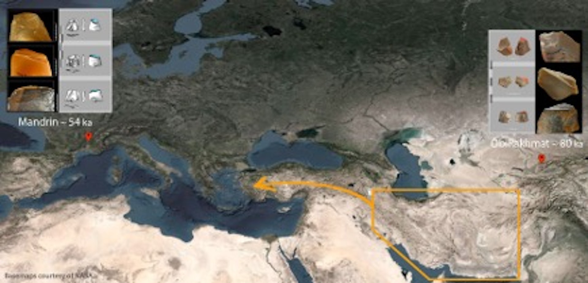 De minuscules pointes de projectile triangulaires ont été identifiées à partir de leurs fractures d’impact dans les plus anciennes couches d’occupation du site d’Obi-Rakhmat en Ouzbékistan, vieilles de 80 000 ans. Elles ont la dimension de pointes de flèches et sont identiques à celles découvertes dans une couche beaucoup plus récente d’un site de la vallée du Rhône, en France, à la toute fin du Paléolithique moyen, correspondant à une incursion d’Homo Sapiens en territoire néanderthalien il y a 54 000 ans. Cette nouvelle étude, publiée dans la revue « PLOS One », apporte un argument décisif pour la réécriture du scénario de l’arrivée d’Homo Sapiens en Europe.